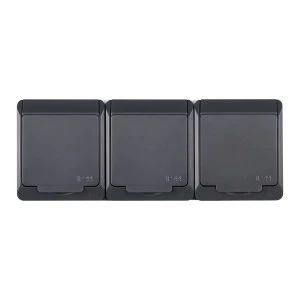 HERMES Gniazdo natynkowe potrójne z uziemieniem 3x2P+Z IP44 czarne 0323-09