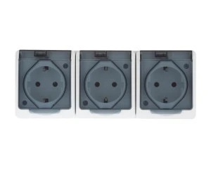 MADERA Gniazdo hermetyczne potrójne z/u Schuko IP44 klapka biała GNH-3NS/00/w