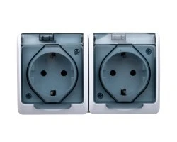 Hermes2 Gniazdo hermetyczne podwójne z/u 16A SCHUKO IP44 z klapką biało-dymne 1025-01