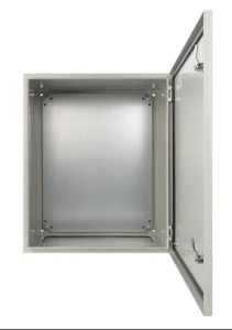 Nazwa: Obudowa metalowa z płytą montażową AWOH506030 IP66 500x600x300 Wymiary 500 x 600 x 300 [+/-2 mm] Płyta montażowa blacha, 450 x 565 [+/-2 mm] Zamykanie 2 x zamek dwupiórowy - możliwość montażu zamka AWOH-K1 (powtarzalny kod) - możliwość montażu zaślepki zamka AWOH-Z1 Montaż natynkowy Wykonanie stal walcowana na zimno SPCC, 1.2mm, RAL7035 (szary), metalowa Stopień ochrony EN60529 IP 66