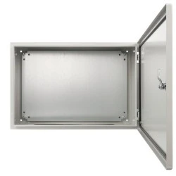 Nazwa: Obudowa metalowa z płytą montażową AWOH604020 IP66 600x400x200 Wymiary 600 x 400 x 200 [+/-2 mm] Płyta montażowa blacha, 550 x 365 [+/-2 mm] Zamykanie 1 x zamek dwupiórowy - możliwość montażu zamka AWOH-K1 (powtarzalny kod) - możliwość montażu zaślepki zamka AWOH-Z1 Montaż natynkowy Wykonanie stal walcowana na zimno SPCC, 1.2mm, RAL7035 (szary), metalowa Stopień ochrony EN60529 IP 66