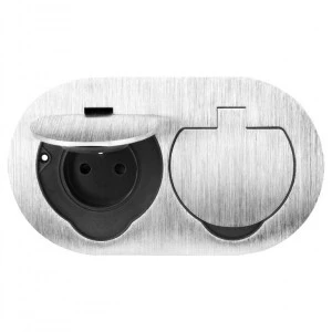 Wysoki stopień ochrony IP55 zapewnia odporność na pył i na strumienie wody, a także użytkowanie produktu przez lata. Gniazdo zostało wykonane z trwałego stopu cynku i wysokiej jakości tworzywa sztucznego, by zapewnić niezawodność w działaniu. Srebrne wykończenie przypominające szczotkowane aluminium daje poczucie estetyki. Dodatkowym zabezpieczeniem jest wbudowana klapka ochronna, zabezpieczająca gniazda przed kurzem i wilgocią. Klapka otwiera się pod kątem 110°, pozwalając tym samym na wygodny dostęp do gniazd.