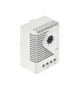 Higrostat mechaniczny,. Higrostat do montażu na szynie DIN 35 mm. Używany do sterowania obudowanymi grzejnikami.