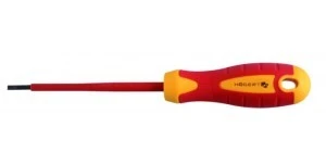 Wkrętaki płaskie 1000 V, atestowane do pracy pod napięciem. Wyprofilowany grot umożliwia pracę w wąskich przestrzeniach.