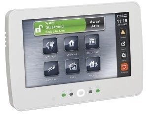 Klawiatura dotykowa, podświetlana z ekranem LCD 7" dedykowana do pracy w systemach alarmowych DSC PowerSeries NEO z obsługą do 16 klawiatur w systemie oraz czytnikiem breloków zbliżeniowych PROX. Możliwość uzbrajania/rozbrajania systemu alarmowego przy użyciu breloka, bez konieczności pamiętania kodu. Wyświetlacz LCD tekstowy 2x16 znaków podświetlany na niebiesko, klawisze funkcyjne podświetlane na biało z możliwością konfiguracji według własnych potrzeb, przyciski alarmowe, wbudowany czujnik niskiej temperatury. Wbudowany slot na kartę pamięci, podwójne zabezpieczenie sabotażowe przed otwarciem obudowy i oderwaniem od ściany. Klasa szczelności obudowy: IP30, klasa wandaloodporności: IK04. Napięcie zasilania: DC 12V. Wymiary: 161 x 161 x 50 mm. Obudowa w kolorze białym.