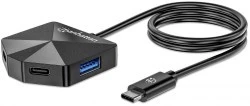 Manhattan 4-port USB 3.0 Hub z interfejsem USB Typ-C to praktyczne i solidne akcesorium do rozszerzenia możliwości Twojego sprzętu. Połączenie 2x USB-C i 2x USB-A, szybki transfer 5 Gb/s i uniwersalna kompatybilność sprawiają, że to doskonały wybór dla osób szukających wygodnego i bezpiecznego sposobu podłączania wielu urządzeń.