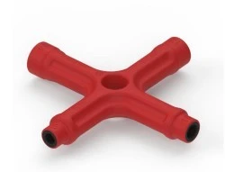 A113.0301 to hybrydowy klucz krzyżakowy o czterech końcówkach 8 mm, 10 mm, 12 mm i 14 mm, przeznaczony do pracy pod napięciem do 1000 V AC lub 1500 V DC. Idealny do zastosowań w instalacjach elektroenergetycznych i rozdzielczych, gdzie wymagane jest bezpieczeństwo oraz wysoka trwałość narzędzia.
