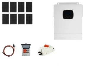 Zestaw składa się z 8 paneli monokrystalicznych o mocy 450W każdy, inwertera hybrydowego ESB 7kW-24, zabezpieczenia DC/DC, rozłącznika izolacyjnego oraz kompletnego okablowania o długości 25 metrów zakończonego złączami MC4.