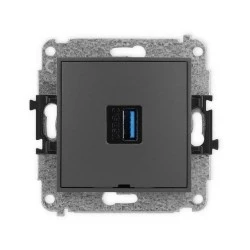 ICON Mechamizm gniazda pojedynczego USB A‑A 3.0, bez pola opisowego grafitowy mat 28IGUSBBO‑5