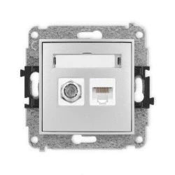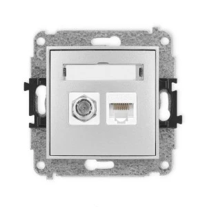 ICON Mechanizm gniazda antenowego poj. typu F (SAT) + gniazda komp. poj. 1xRJ45, kat. 5e, 8‑stykowy srebrny metalik 7IGFK‑1
