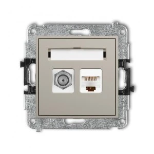 ICON Mechanizm gniazda antenowego poj. typu F (SAT) + gniazda komp. poj. 1xRJ45, kat. 5e, 8‑stykowy taupe 60IGFK‑1