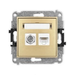 ICON Mechanizm gniazda antenowego poj. typu F (SAT) + gniazda komp. poj. 1xRJ45, kat. 5e, 8‑stykowy złoty 29IGFK‑1
