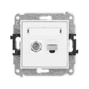 ICON Mechanizm gniazda antenowego poj. typu F (SAT) + gniazda komp. poj. 1xRJ45, kat. 6, 8‑stykowy biały IGFK‑3