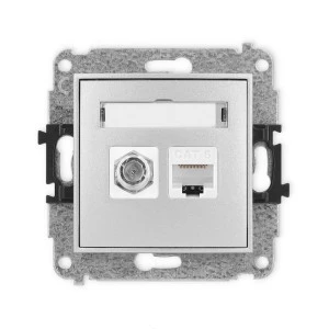 ICON Mechanizm gniazda antenowego poj. typu F (SAT) + gniazda komp. poj. 1xRJ45, kat. 6, 8‑stykowy srebrny metalik 7IGFK‑3