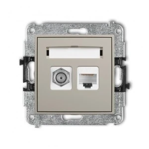 ICON Mechanizm gniazda antenowego poj. typu F (SAT) + gniazda komp. poj. 1xRJ45, kat. 6, 8‑stykowy taupe 60IGFK‑3