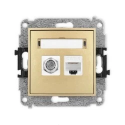 ICON Mechanizm gniazda antenowego poj. typu F (SAT) + gniazda komp. poj. 1xRJ45, kat. 6, 8‑stykowy złoty 29IGFK‑3