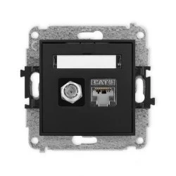 ICON Mechanizm gniazda antenowego poj. typu F (SAT) + gniazda komp. poj. 1xRJ45, kat. 6 ekranowane, 8‑styk czarny mat 12IGFK‑5