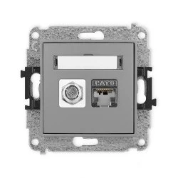 ICON Mechanizm gniazda antenowego poj. typu F (SAT) + gniazda komp. poj. 1xRJ45, kat. 6 ekranowane, 8‑stykowy szary mat 27IGFK‑5