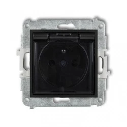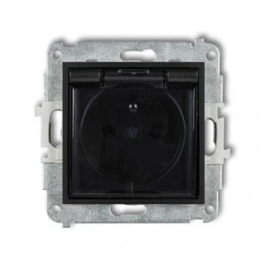 ICON Mechanizm gniazda bryzgoszczelnego z uziemieniem 2P+Z (klapka dymna, przesłony torów prądowych) czarny mat 12IGPB-1zdp to typ gniazda elektrycznego oferowany przez firmę ICON. Ten model jest zaprojektowany z myślą o ochronie przed wilgocią i wodą, co sugeruje termin "bryzgoszczelne".