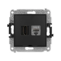 ICON Mechanizm gniazda HDMI 2.1, 8K + gniazda 1xRJ45, kat. 8, ekranowany, 8‑stykowy, bez pola opisowego czarny mat 12IGHKBO‑88