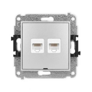 ICON Mechanizm gniazda komputerowego podwójnego 2xRJ45, kat. 5e, 8‑stykowy, bez pola opisowego srebrny metalik 7IGKBO‑2