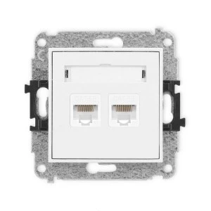 ICON Mechanizm gniazda komputerowego podwójnego 2xRJ45, kat. 5e, 8‑stykowy biały mat 25IGK‑2