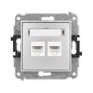 ICON Mechanizm gniazda komputerowego podwójnego 2xRJ45, kat. 5e, 8‑stykowy srebrny metalik 7IGK‑2