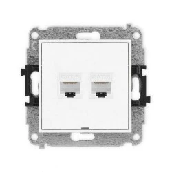 ICON Mechanizm gniazda komputerowego podwójnego 2xRJ45, kat. 6, 8‑stykowy, bez pola opisowego biały mat 25IGKBO‑4