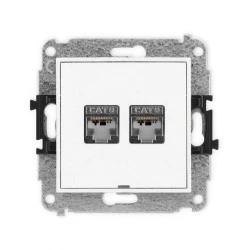ICON Mechanizm gniazda komputerowego podwójnego 2xRJ45, kat. 6, ekranowane, 8‑stykowy, bez pola opisowego biały mat 25IGKBO‑6