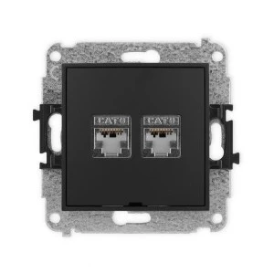 ICON Mechanizm gniazda komputerowego podwójnego 2xRJ45, kat. 6, ekranowane, 8‑stykowy, bez pola opisowego czarny mat 12IGKBO‑6