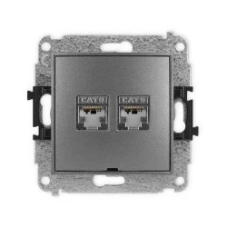 ICON Mechanizm gniazda komputerowego podwójnego 2xRJ45, kat. 6, ekranowane, 8‑stykowy, bez pola opisowego grafitowy 11IGKBO‑6
