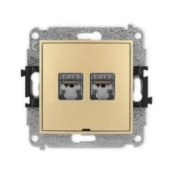 ICON Mechanizm gniazda komputerowego podwójnego 2xRJ45, kat. 6, ekranowane, 8‑stykowy, bez pola opisowego złoty 29IGKBO‑6