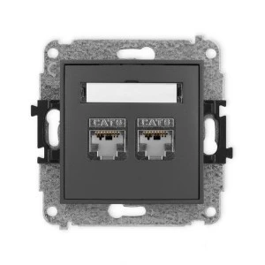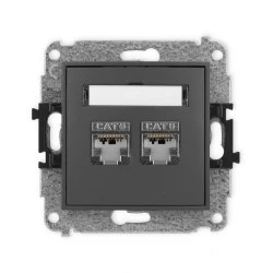 ICON Mechanizm gniazda komputerowego podwójnego 2xRJ45, kat. 6, ekranowane, 8‑stykowy grafitowy mat 28IGK‑6