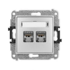 ICON Mechanizm gniazda komputerowego podwójnego 2xRJ45, kat. 6, ekranowane, 8‑stykowy srebrny metalik 7IGK‑6