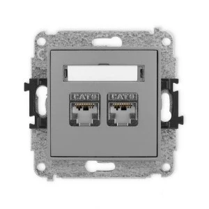 ICON Mechanizm gniazda komputerowego podwójnego 2xRJ45, kat. 6, ekranowane, 8‑stykowy szary mat 27IGK‑6