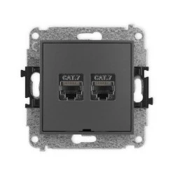 ICON Mechanizm gniazda komputerowego podwójnego 2xRJ45, kat. 7, ekranowane, 8‑styk, bez pola opisowego grafitowy mat 28IGKBO‑10