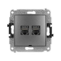 ICON Mechanizm gniazda komputerowego podwójnego 2xRJ45, kat. 7, ekranowane, 8‑stykowy, bez pola opisowego grafitowy 11IGKBO‑10