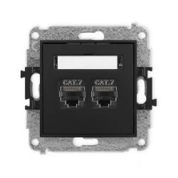 ICON Mechanizm gniazda komputerowego podwójnego 2xRJ45, kat. 7, ekranowane, 8‑stykowy czarny mat 12IGK‑10