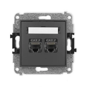 ICON Mechanizm gniazda komputerowego podwójnego 2xRJ45, kat. 7, ekranowane, 8‑stykowy grafitowy mat 28IGK‑10
