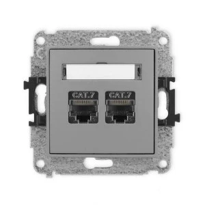 ICON Mechanizm gniazda komputerowego podwójnego 2xRJ45, kat. 7, ekranowane, 8‑stykowy szary mat 27IGK‑10