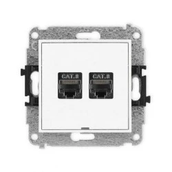 ICON Mechanizm gniazda komputerowego podwójnego 2xRJ45, kat. 8, ekranowane, 8‑stykowy, bez pola opisowego biały mat 25IGKBO‑12