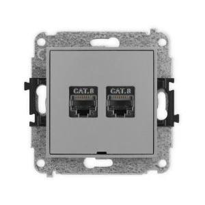 ICON Mechanizm gniazda komputerowego podwójnego 2xRJ45, kat. 8, ekranowane, 8‑stykowy, bez pola opisowego szary mat 27IGKBO‑12