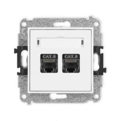 ICON Mechanizm gniazda komputerowego podwójnego 2xRJ45, kat. 8, ekranowane, 8‑stykowy biały IGK‑12