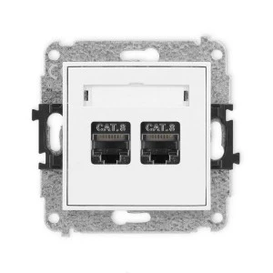ICON Mechanizm gniazda komputerowego podwójnego 2xRJ45, kat. 8, ekranowane, 8‑stykowy biały mat 25IGK‑12