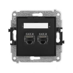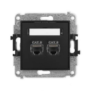 ICON Mechanizm gniazda komputerowego podwójnego 2xRJ45, kat. 8, ekranowane, 8‑stykowy czarny mat 12IGK‑12