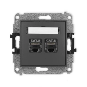ICON Mechanizm gniazda komputerowego podwójnego 2xRJ45, kat. 8, ekranowane, 8‑stykowy grafitowy mat 28IGK‑12