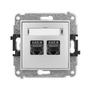 ICON Mechanizm gniazda komputerowego podwójnego 2xRJ45, kat. 8, ekranowane, 8‑stykowy srebrny metalik 7IGK‑12