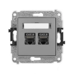 ICON Mechanizm gniazda komputerowego podwójnego 2xRJ45, kat. 8, ekranowane, 8‑stykowy szary mat 27IGK‑12