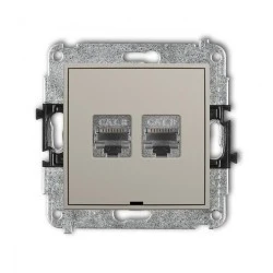 ICON Mechanizm gniazda komputerowego podwójnego 2xRJ45, kat. 8, ekranowany, 8‑stykowy, bez pola opisowego taupe 60IGKBO‑12