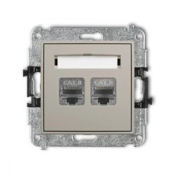 ICON Mechanizm gniazda komputerowego podwójnego 2xRJ45, kat. 8, ekranowany, 8‑stykowy taupe 60IGK‑12